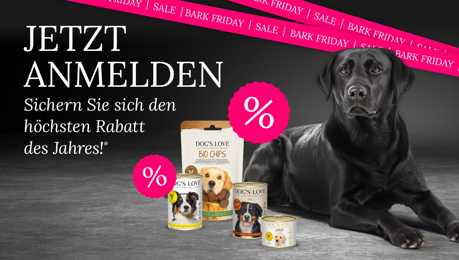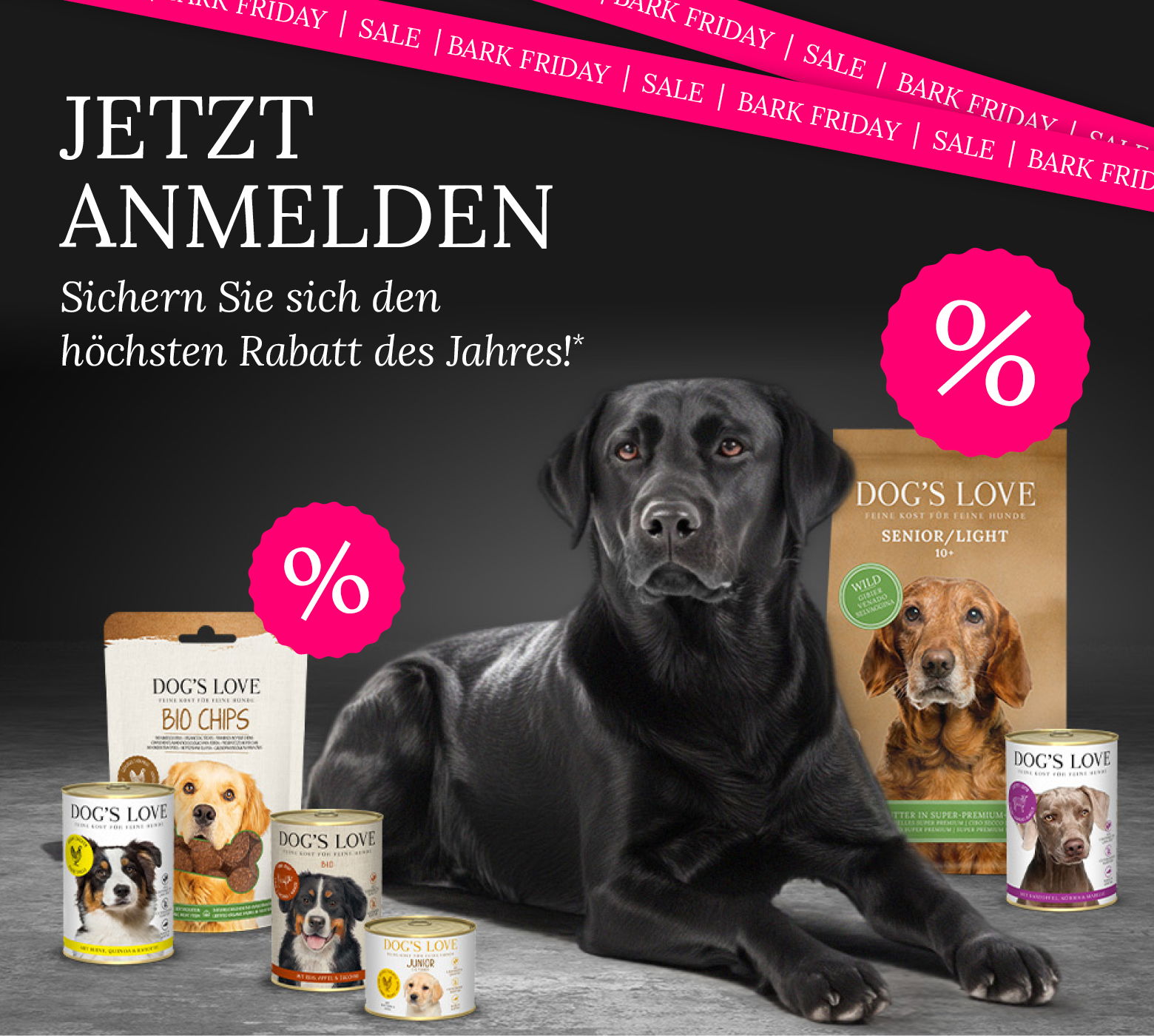 *Aktion gültig im DOG'S LOVE Onlineshop (ausgenommen dogslove.com/it und dogslove.com/es) von 11. November 2025, 09:00 Uhr bis 11. November 2025, 23:59 Uhr. Nicht kombinierbar mit anderen Rabatten oder Aktionen. Sale Ware, limitierte Produkte, Testboxen, Probepackungen, Abo-Bestellungen, Messbecher und Dosendeckel sind von der Aktion ausgeschlossen. Neukunden- und Vielbestellerrabatt können während des Aktionszeitraums nicht eingelöst werden. Aufgrund der aktuellen Lage kann es zu verlängerten Lieferzeiten von bis zu 10 Werktagen kommen. Gültig nur für Endkunden.