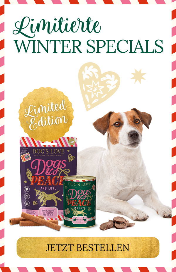 Hunde sind Familienmitglieder – und unsere besten Freunde. Damit sie das nicht nur spüren, sondern auch schmecken, haben wir DOG’S LOVE gegründet. Denn jeder Hund verdient eine gesunde, artgerechte Ernährung – ohne Kompromisse. Gemeinsam mit Ernährungsexperten haben wir Menüs für alle Lebensphasen und Bedürfnisse entwickelt – vom Junior bis zum Senior, auch für Allergiker und sensible Hunde.