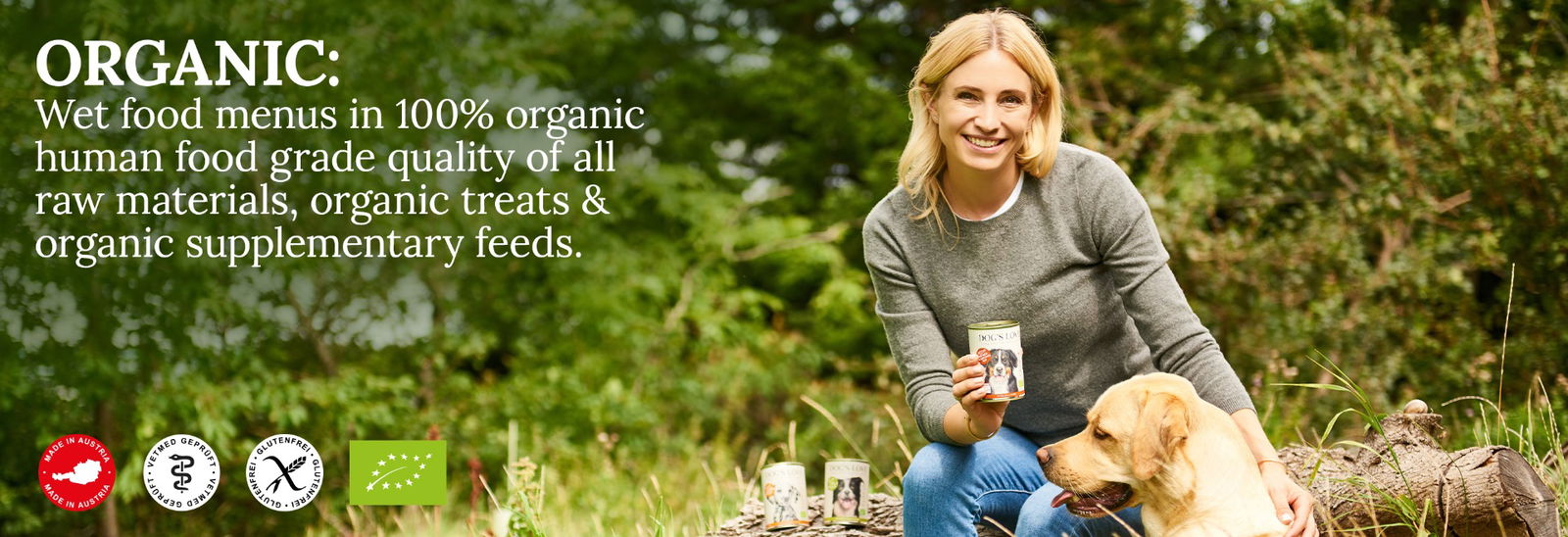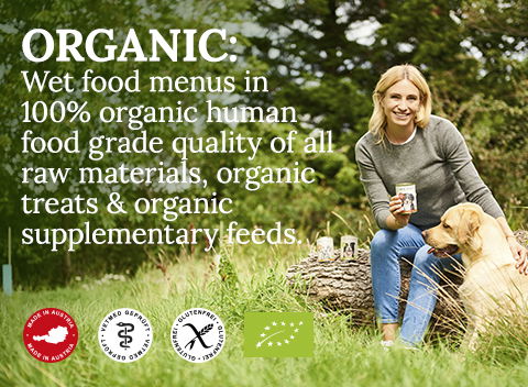 For responsible and respectful dealings with nature, these menus are produced in a sustainable way using only ingredients from certified organic cultivation and species-appropriate animal welfare. Like all DOG’S LOVE products, our organic line is completely gluten free and optimally
