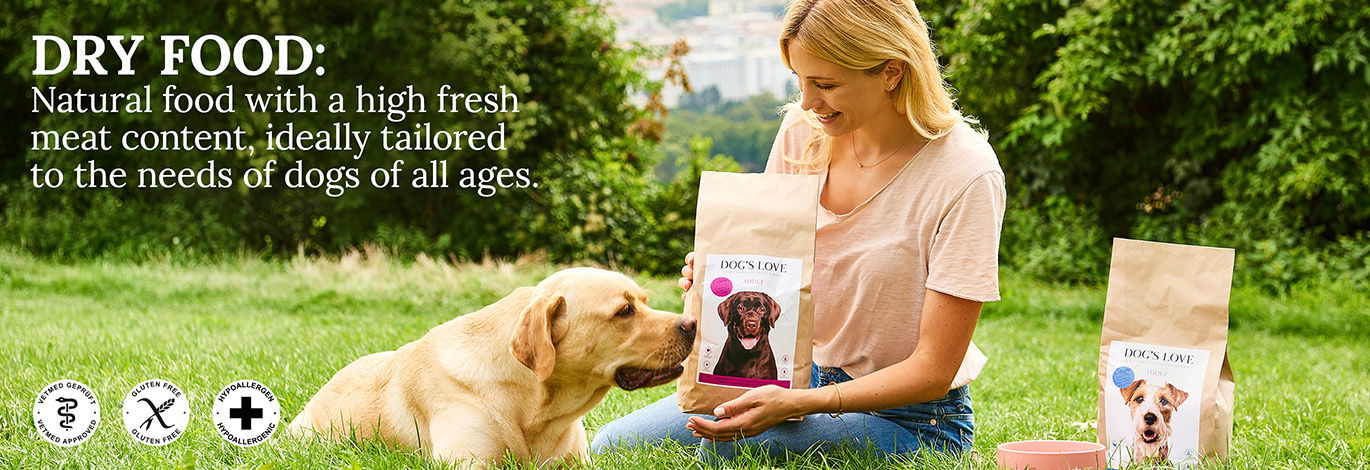 The hypoallergenic dry dog foods in the DOG’S LOVE range will give your dog a taste for nature. With 50 percent meat or fish protein, sweet potatoes, vitamin packed vegetables and fruits, cold pressed oils and other wholesome ingredients, our varied and complete dog foods are specially formulated for the needs of adult dogs.
