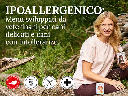 Per l’alimentazione dei cani particolarmente sensibili con allergie ed intolleranze, indicata anche come supporto per una dieta a esclusione. Le varietà IPOALLERGENICO cavallo e anatra arricchisce l’assortimento DOG’S LOVE con menu completi; sono composte ciascuna da una rara fonte di proteine ed hanno preparazioni create accuratamente da medici veterinari mirate all’alimentazione di cani sensibili a determinati alimenti. PERCHÉ UN’ALIMENTAZIONE PER CANI IPOALLERGENICA? Sempre più cani soffrono di intolleranze ed allergie alimentari che si manifestano con disturbi allo stomaco, nel tratto intestinale, problemi al pelo e/o cute irritata. Con una fonte di proteine rara ( cavallo o anatra) e con materie prime scelte appositamente e in numero limitato, il rischio di allergie e intolleranze diminuisce sensibilmente con le varietà IPOALLERGENICHE di DOG’S LOVE, poiché si fa consapevolmente a meno dei componenti alimentari che possono provocare allergie. Con l’indicazione chiara dei prodotti DOG’S LOVE riconoscete subito quali materie prime vengono lavorate e così potete orientare il piano alimentare del vostro cane alle sue precise esigenze.